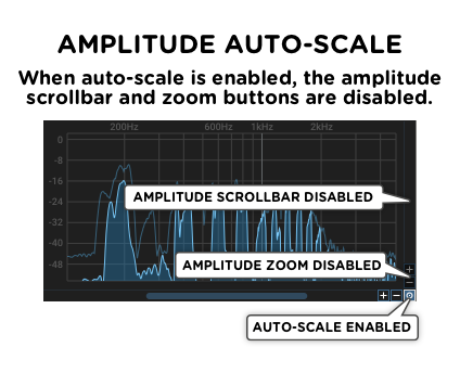 When a new module is created, it is in auto-scale mode. The amplitude scrollbar and zoom are disabled, and the display automatically adjusts so that the loudest part of the spectrum is visible on screen.